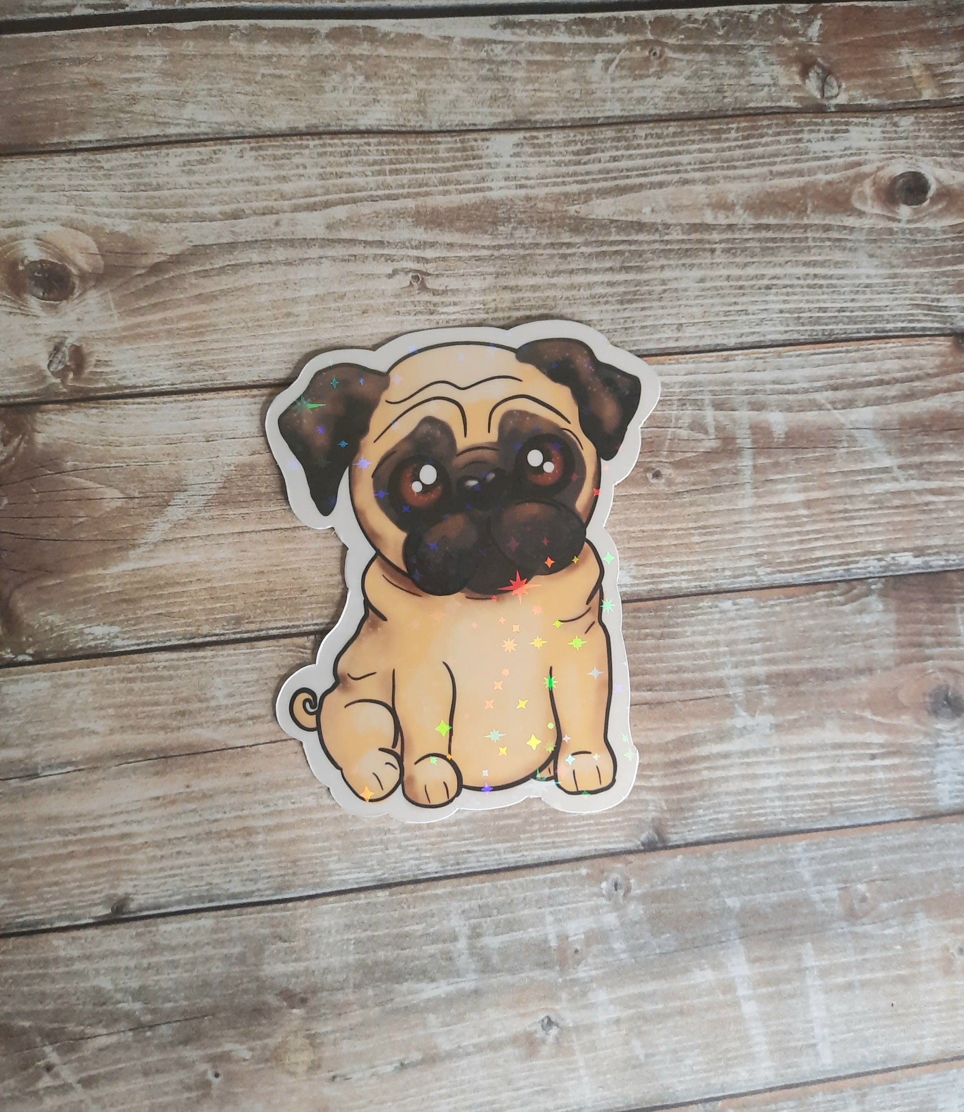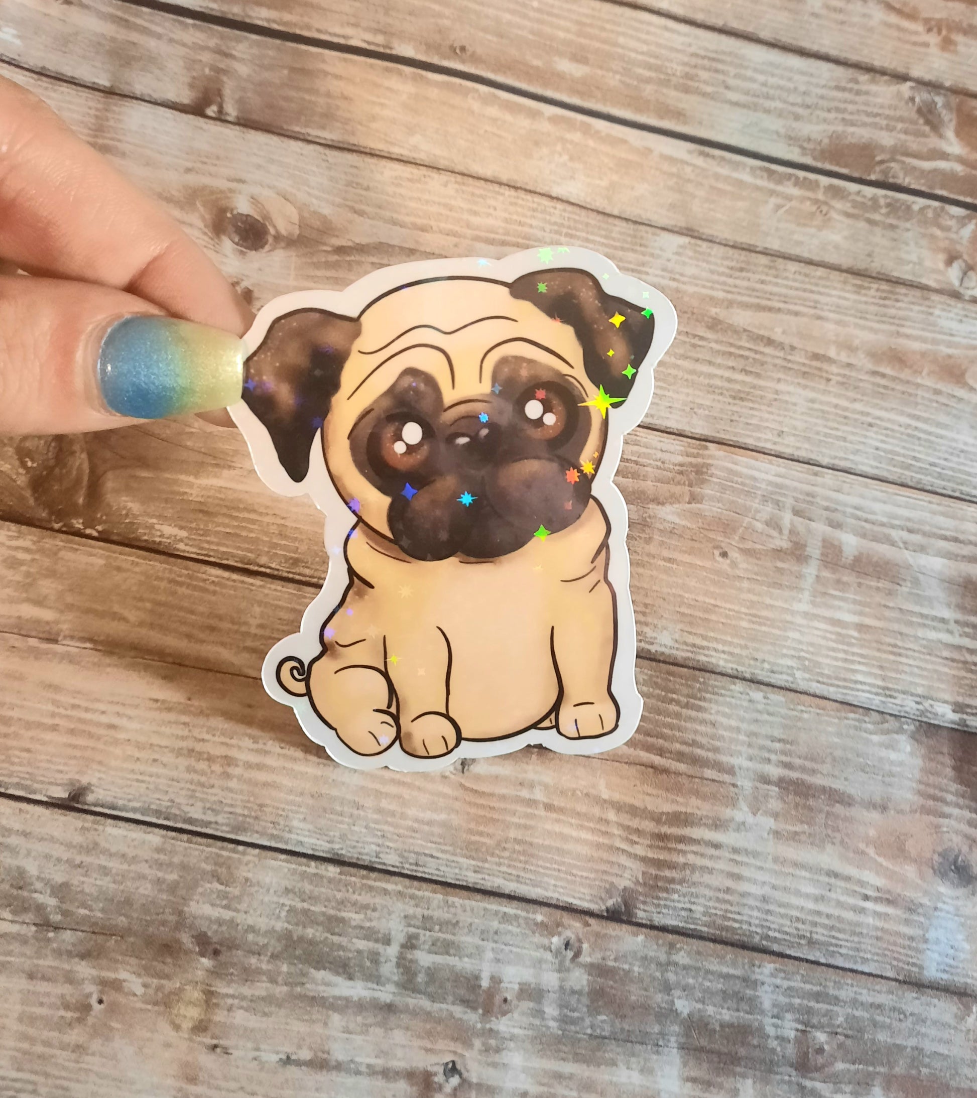 This adorable pug sticker is 3 inches tall, laminated and handmade with love. When putting on water bottles make sure your bottle is not powder coated and hand wash only. This sticker is for indoor use only.