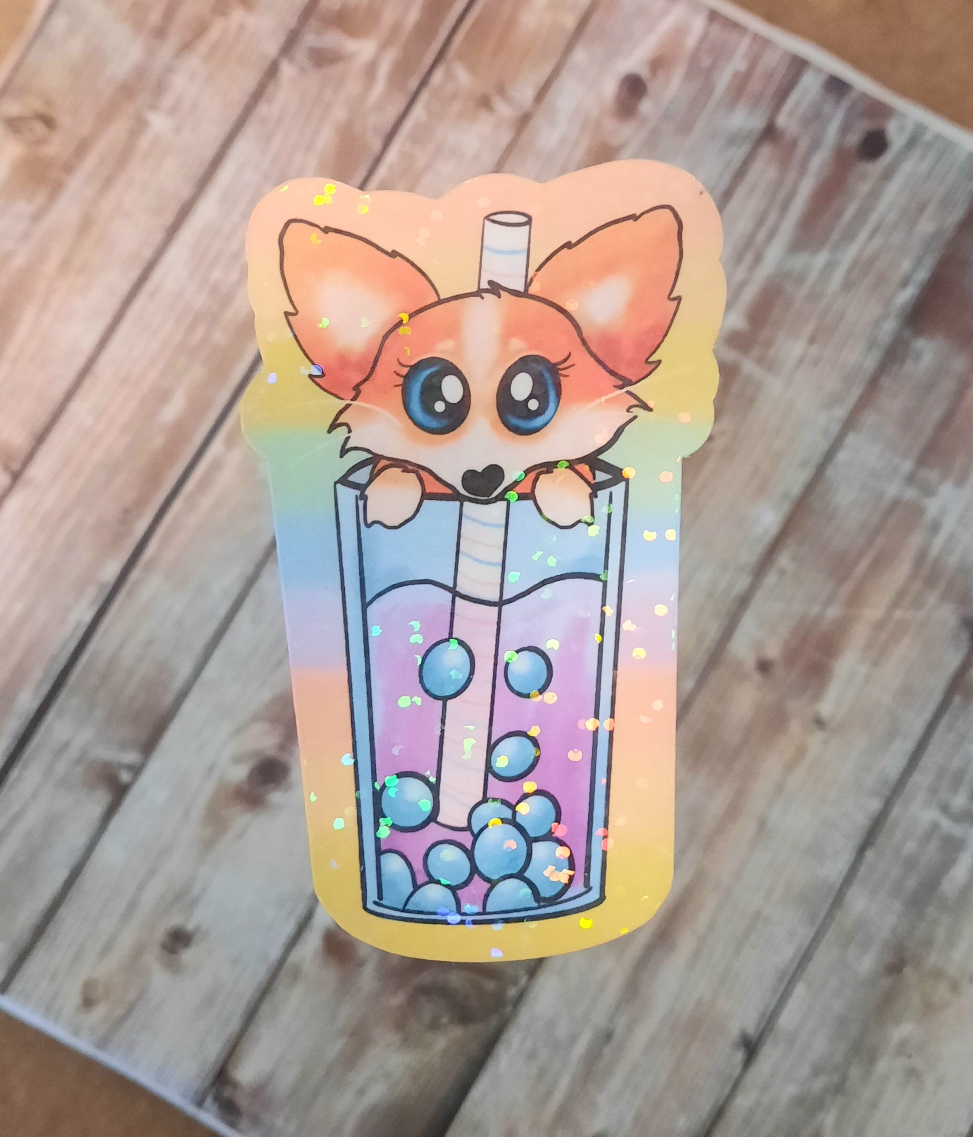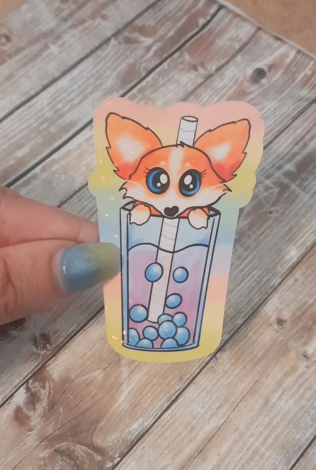 This adorable 3 inch tall fox boba is colorful and will pop on your water bottle, laptop and more!