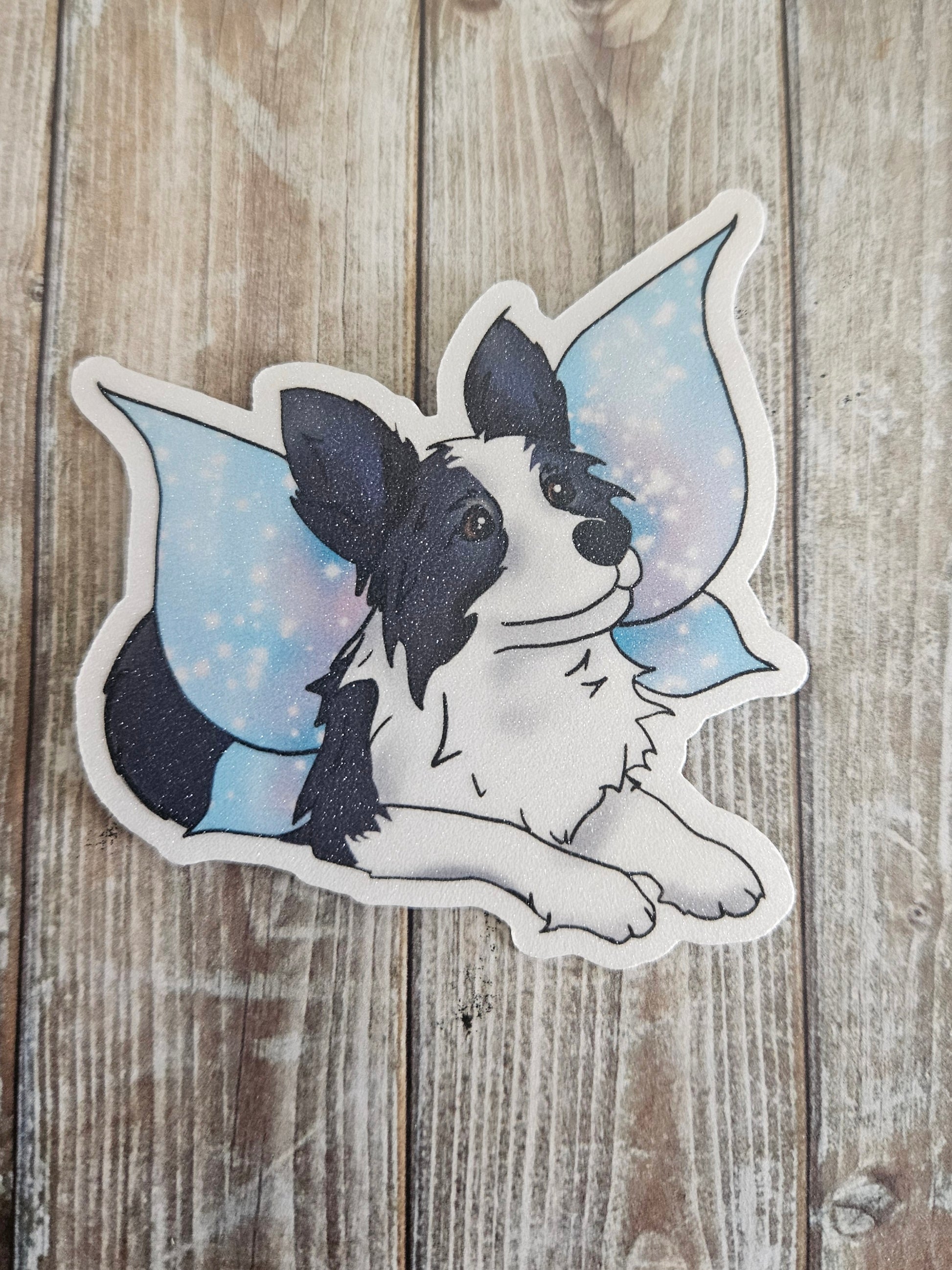 Border collie with wings sticker for water bottle