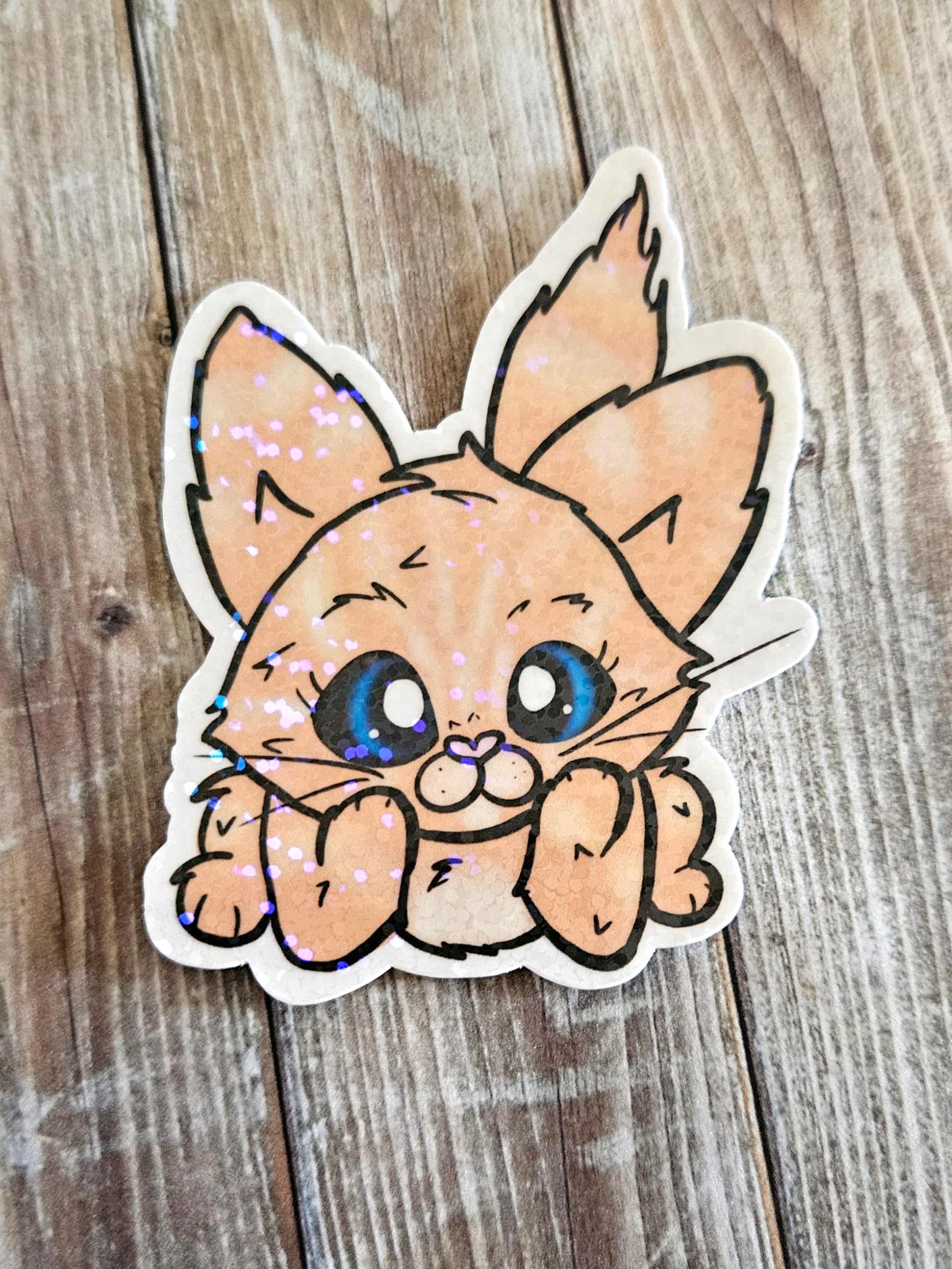 Select which kitten sticker you would like! Sticker is 3 inches on the longest side, laminated for water resistance and handmade with love. Be sure to handwash only and use on a smooth flat surface. Sticker will not work on powder coated water bottles.
