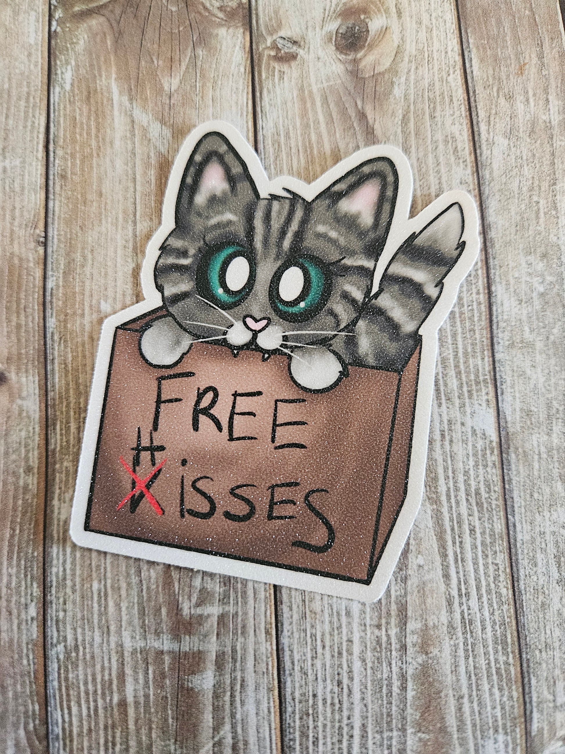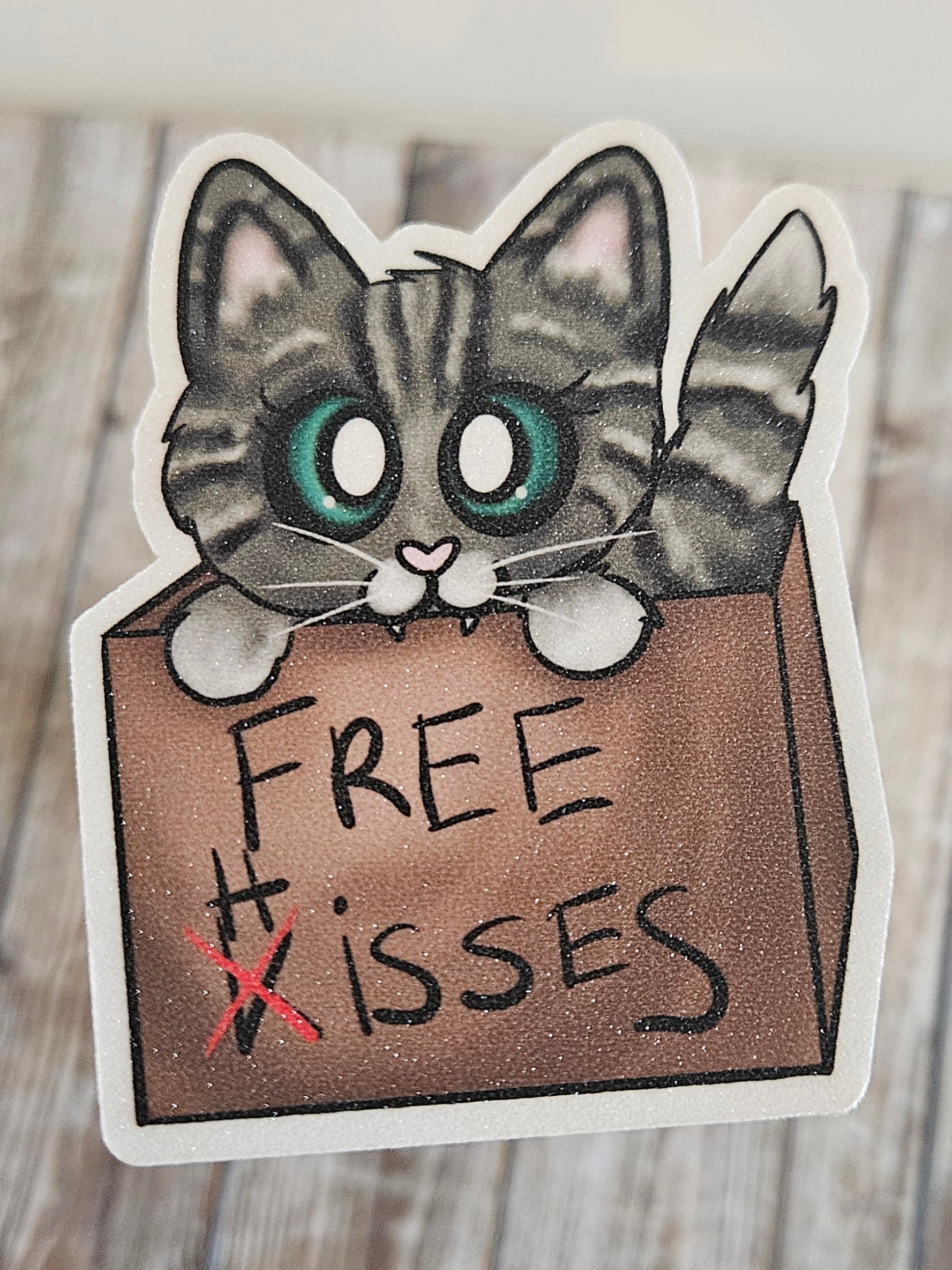 Free hisses tabby cat in a cardboard box sticker for water bottle