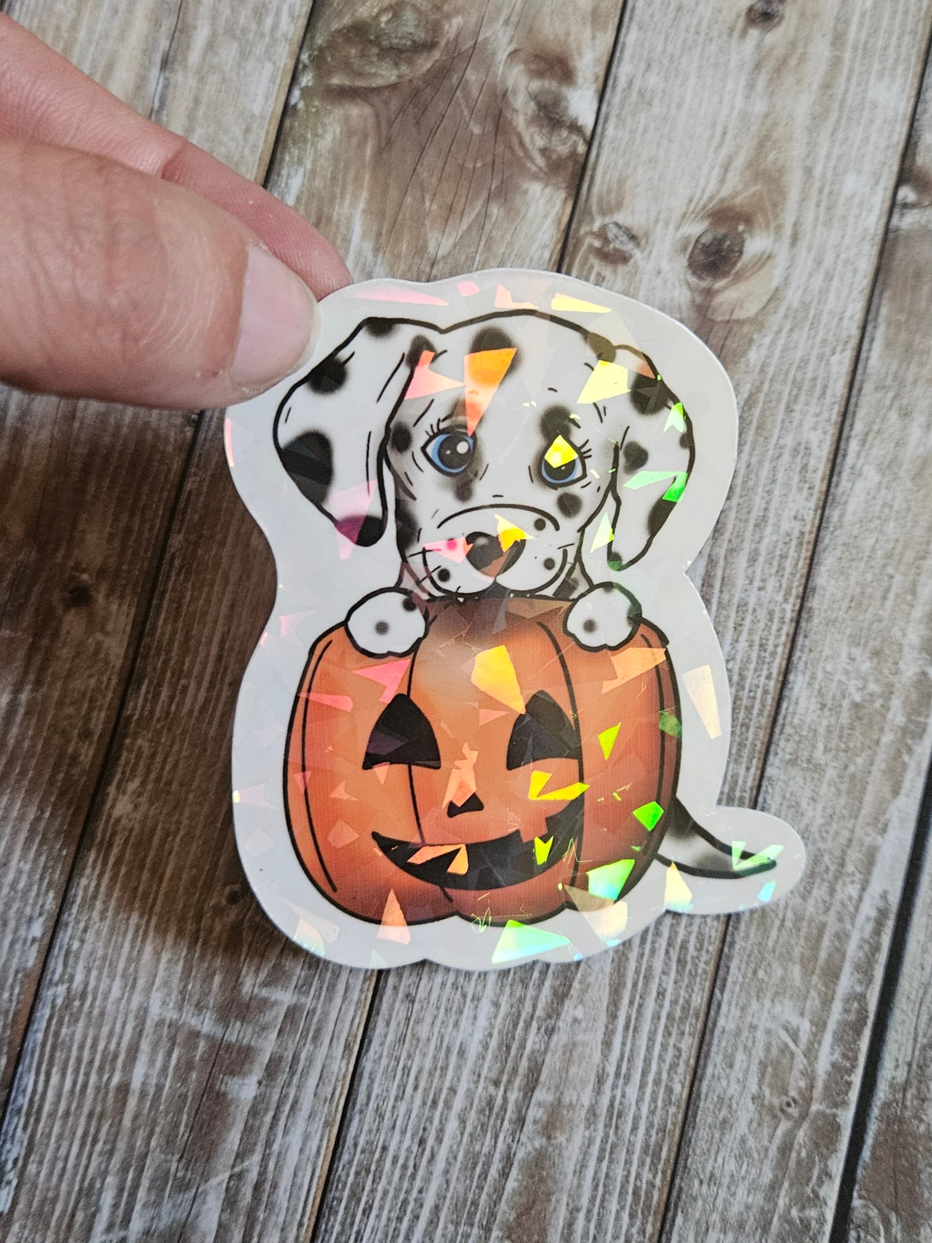 Dalmatian puppy in a pumpkin sticker for water bottle