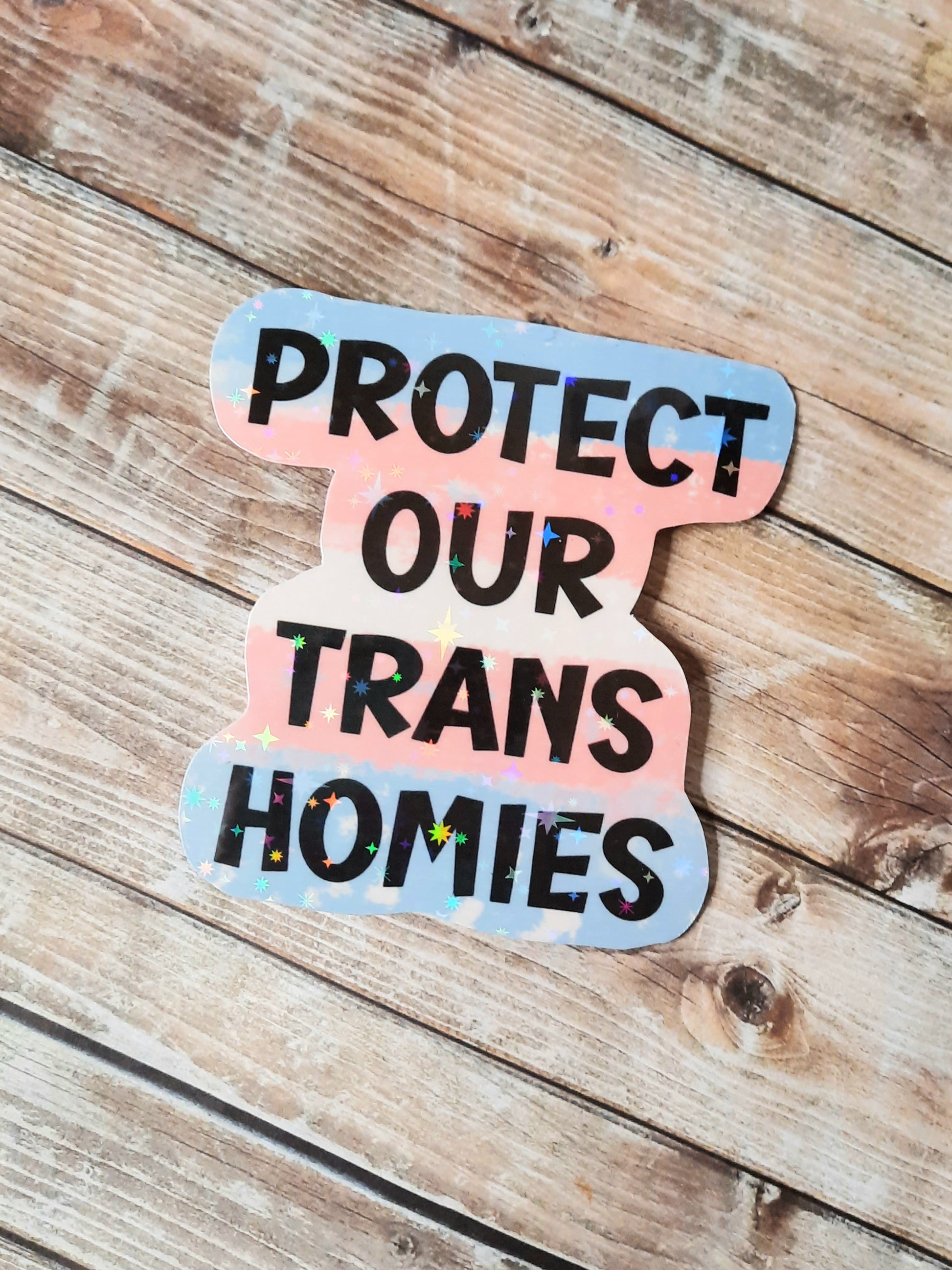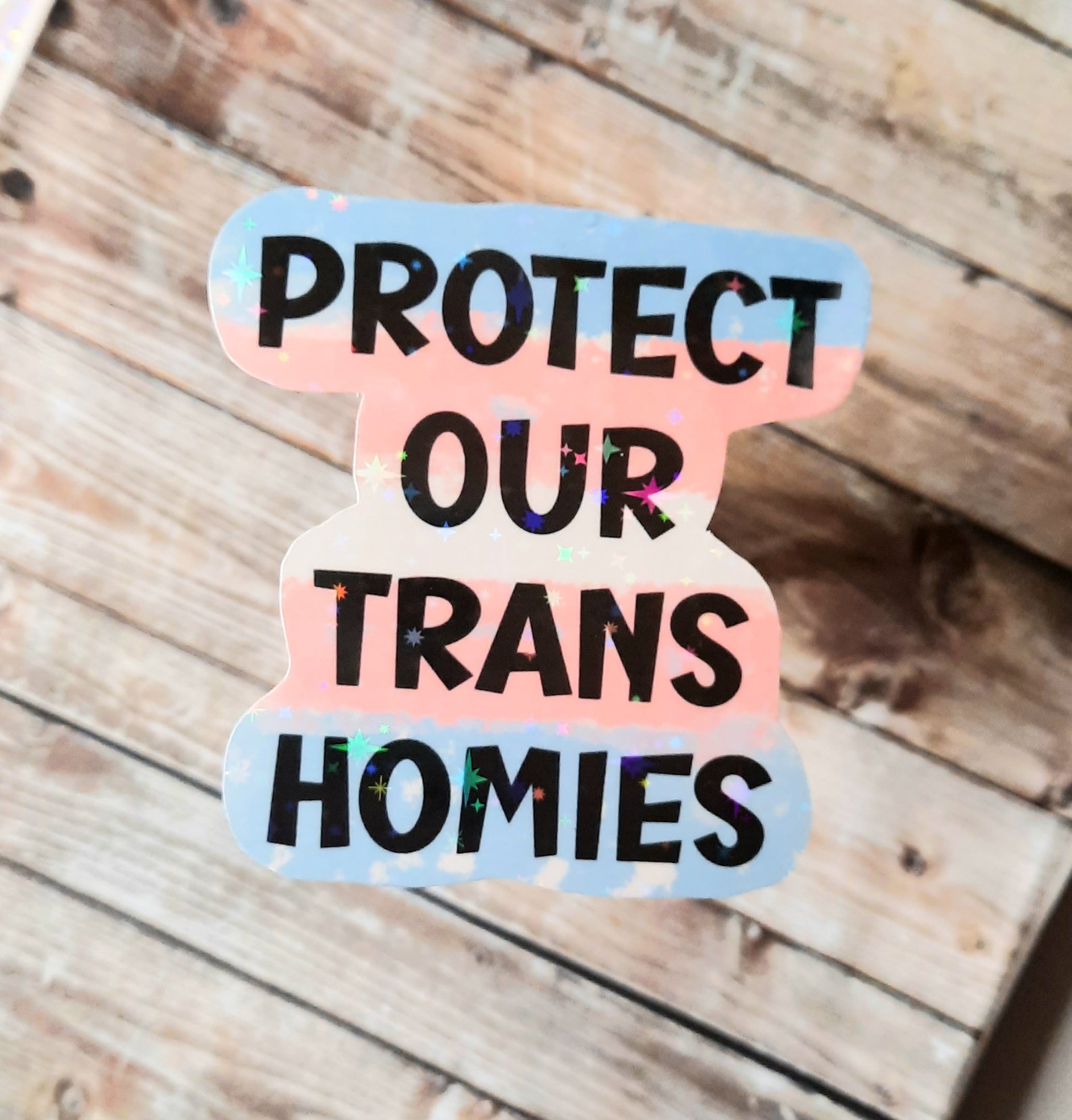 Our protect our Trans homies sticker is an amazing sticker to celebrate our Trans family!