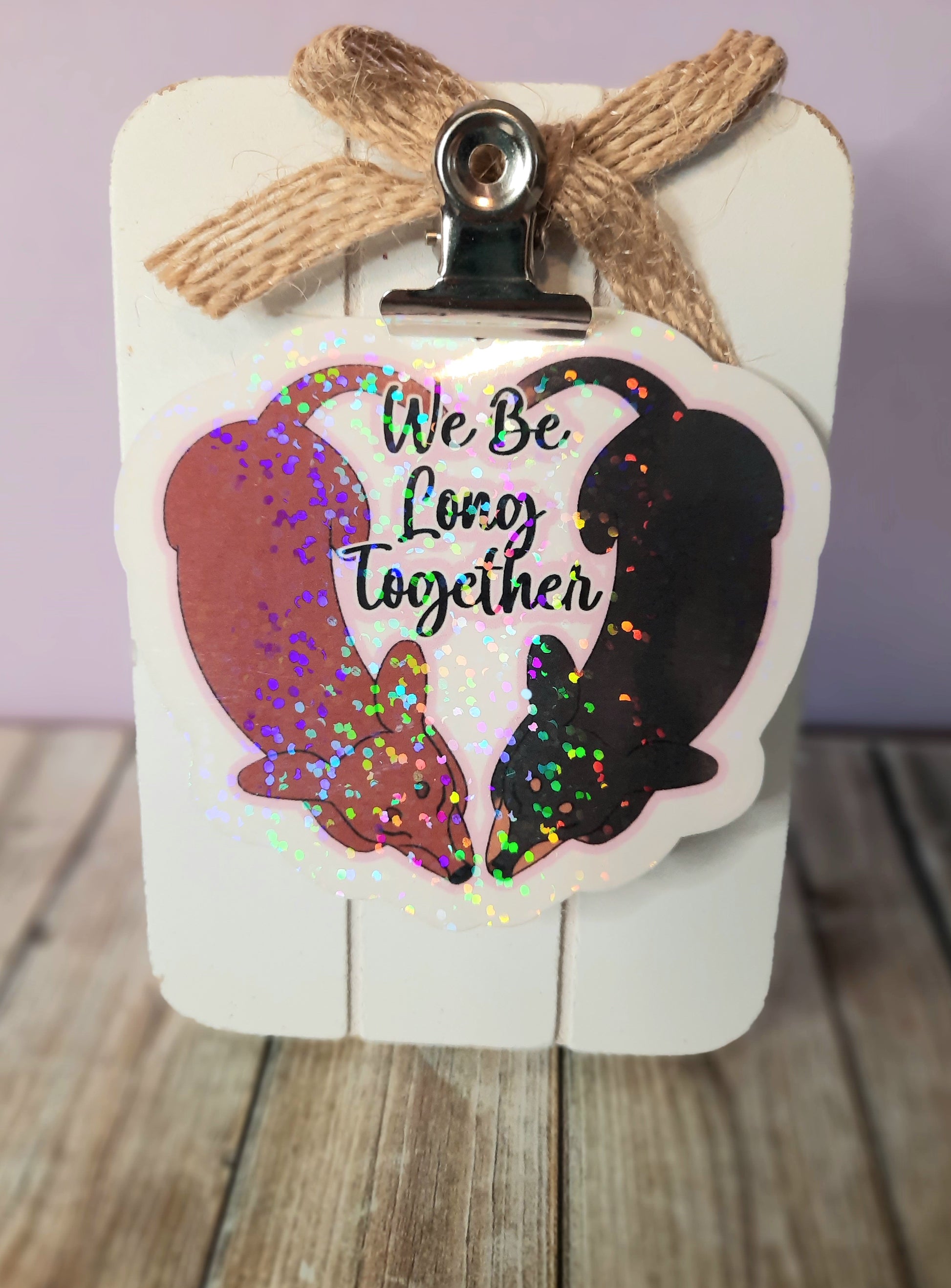 These weenies are too cute! This would be a wonderful valentines gift for February, or any time for us dachshund lovers! It features two sleeping dachsunds forming a heart and is laminated with holographic overlay.
